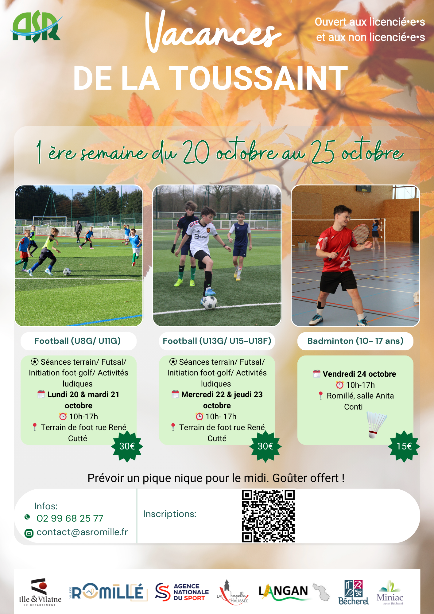 Les vacances de la Toussaint arrivent… et avec elles, un programme sportif bien rempli pour les jeunes des 5 communes !